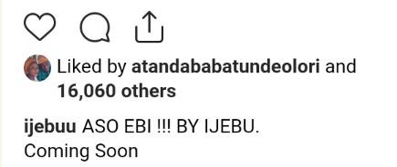 It appears he is set to produce a movie titled 'Aso Ebi' and he is using this funny image to promote the project.