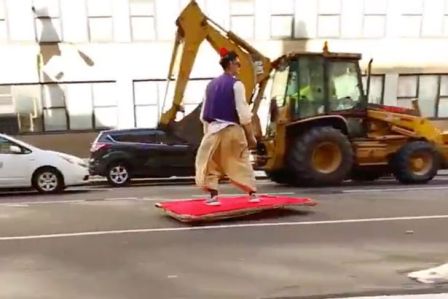 Real Life Aladdin Flies Through New York Streets on Magic Carpet (Photos + Video)