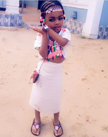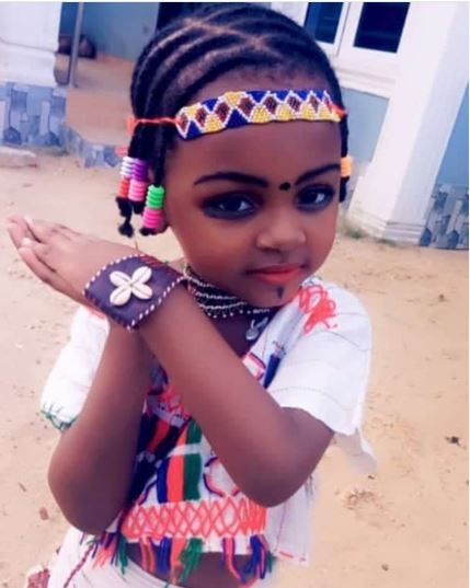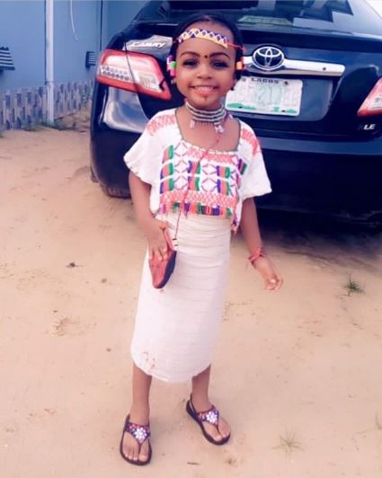 Nigerian comedian, Akpororo's 1st daughter, Ayomikun stepped out in Hausa outfits for cultural day.