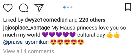 "My Hausa princess love you so much my world cultural day," the pictures were captioned.