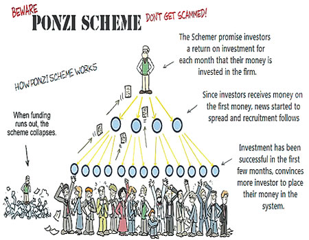 Ponzi schemes basically do the following in its operations. They convince a few investors to place money into the investment; after the specified time, return the investment money to the investors plus the specified interest rate or return; use success of earlier investors to convince more investors to place their money into the system. Typically, the vast majority of the earlier investors will return; repeat steps 1 through 3 a number of times. During step 2 at one of the cycles, break the pattern. Instead of returning the investment money and paying the promised return, escape with the money and start a new life.