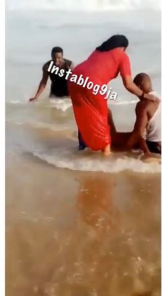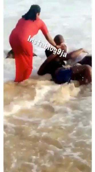 This is the moment two lovers were nearly swept away by the ocean while kissing at the Elegushi beach in Lagos.