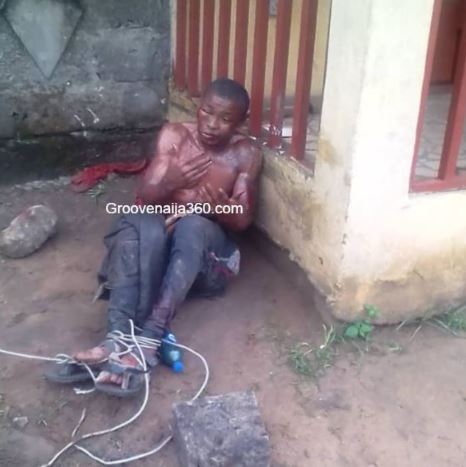 One of the motorcycle thieves terrorizing Alesa community in Eleme, Rivers State has been caught and dealt with by angry mob in the very early house of today.