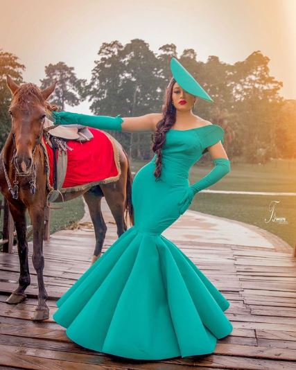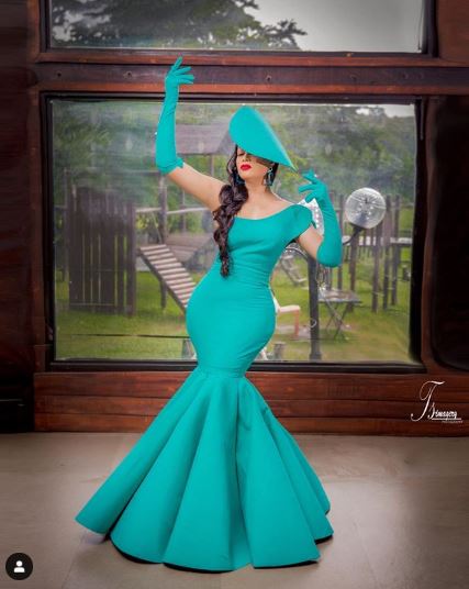 The pretty thespian shared series of beautiful photos of herself on her Instagram page to mark the occasion. The mulatto beauty was spotted wearing an aqua coloured mono-strap dress with the elbow gloves in the same colour.