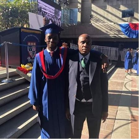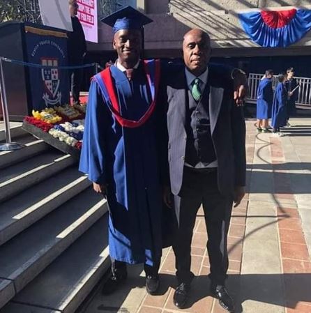 His father seemed proud of him as they posed together for pictures during his graduation ceremony.
