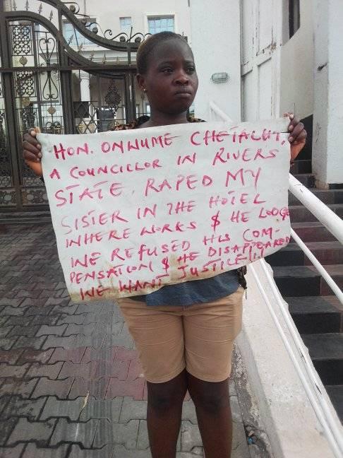 She alleged that her sister was later rescued by customers and other workers who heard her screams and kept banging on the room door of the councilor. She alleged further, that the suspect later tried to bribe her sister with N50k, which she rejected.