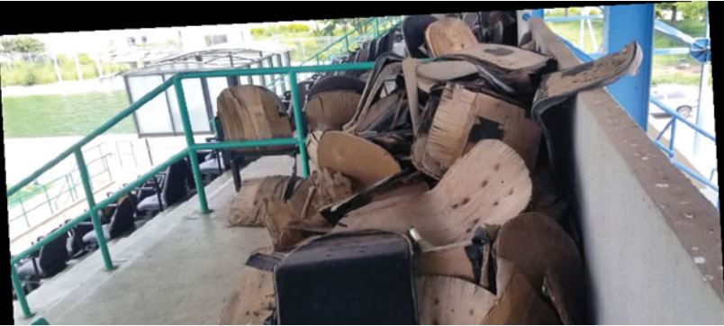 Many of the seats at the spectators’ section have been badly damaged, while the bad ones were simply dumped on the top deck in a messy lump.