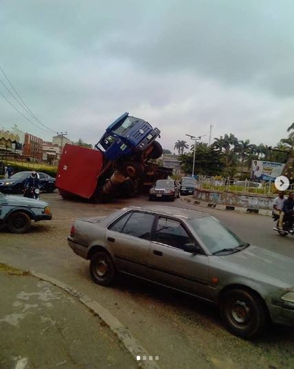 A large truck which was conveying some goods to an undisclosed location crashed in the city of brown roofs, Ibadan earlier today.
