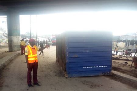The fallen container occupied about 60% of the road. In the process, it caused a bit of traffic impedance.