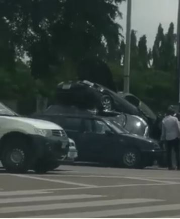 Many people were left shocked after the cars on high speed somersaulted on top each other.