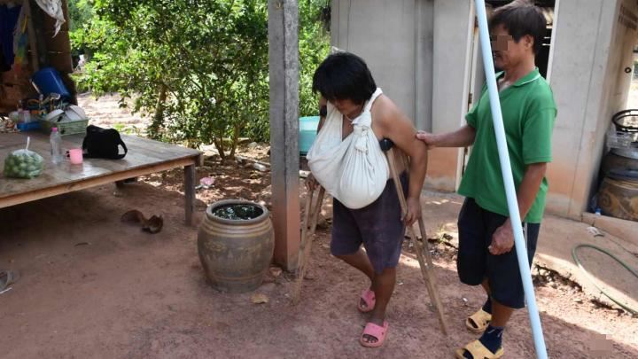 The weight of Lam Phrai Si Nuan’s breasts puts constant pressure on her spine, and she suffers from excruciating neck, shoulder and back pain. To make matters worse, the added weight has rendered the 46-year-old woman unable to move around without wooden crutches.