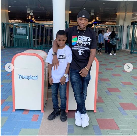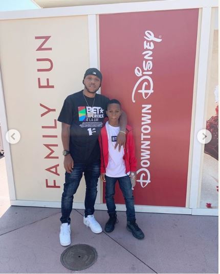 Nollywood actor and rapper, Charles Okocha aka Igwe 2Pac made his first public appearance with his son after undergoing a successful surgery in Los Angeles, California.