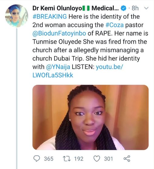 Kemi Omololu Olunloyo has been trying hard to grab her share of the Pastor Abiodun Fatoyinbo Gate and she seems to have made her breakthrough.