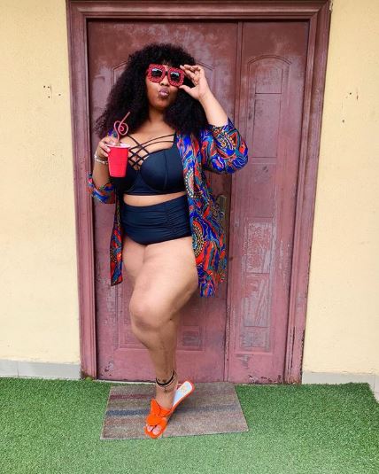 The picture caused a storm on social media with many urging her to cover up her excess flesh. The picture has also attracted admirations from men who love their women in this size frame.
