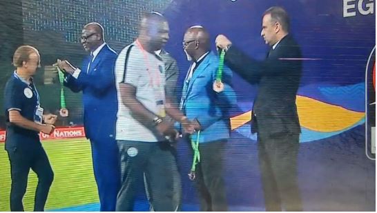 AFCON 2019: Pinnick 'Snubs' Rohr During Bronze Medal Presentation (Video)