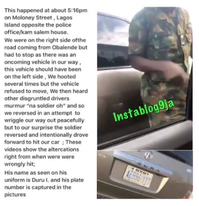 The soldier was said to have driven a Honda Acura with number plate, Oyo AE 996 YYY.