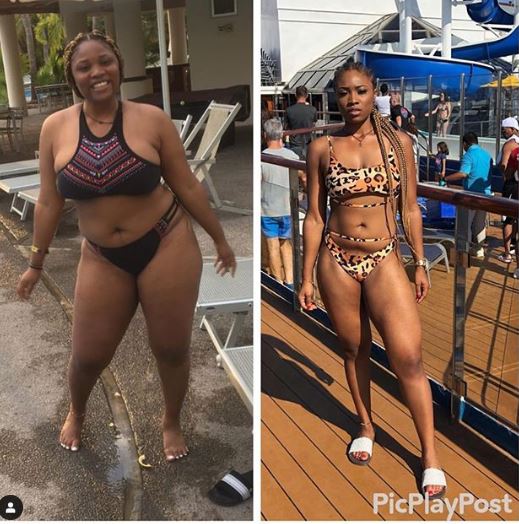 Less than a year ago, Adaora was a plus-sized lady and this didn't go down well with her. So, she decided to shed some weight through regular physical exercises and made significant progress.
