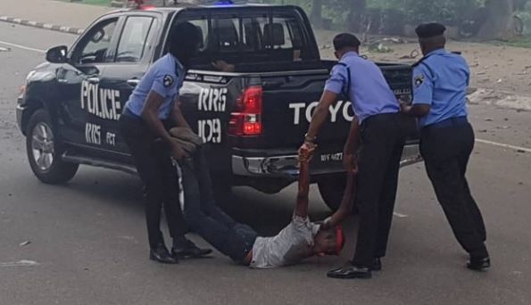 Men of the Nigeria police force have evacuated corpses of protesters who were shot dead in Abuja on Monday.