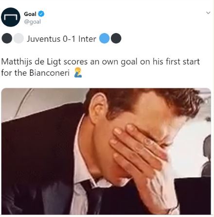 Matthijs de Ligt suffered the embarrassment of scoring an own goal in his first start for Juventus, after he made his debut against Tottenham.