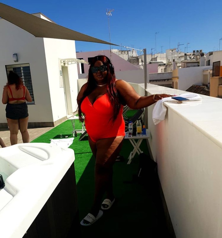 Plus-sized actress, Eniola Badmus is having the best fun of her life after she showed off her well-endowed body rocking a swimsuit in Spain.
