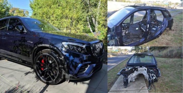 While sharing photos of his stripped car, he disclosed that the auto parts which had barcodes and identification numbers were all left on the road.