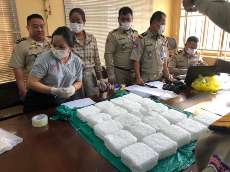“They were arrested red-handed after police raided a room in a guesthouse in Boeng Tumpon II commune that they were staying in,” Col Sitha said. “After the raid and their arrests, police seized 21 large packages of crystal meth weighing nearly 21 kilograms, three passports, four phones, and other drug-related materials from them”