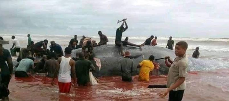 A whale was reported to have been swept to the shores of a beach in Okpoama and Onyekia communities in Brass Local Government Area of Bayelsa State.