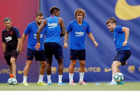 While Suarez trained alongside defender Gerard Pique, the former Atletico Madrid star was with his countrymen Samuel Umtiti and Ousmane Dembele.