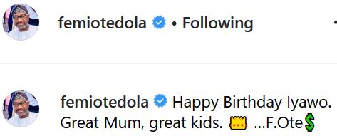 He simply wrote: "Happy Birthday Iyawo. Great Mum, great kids."