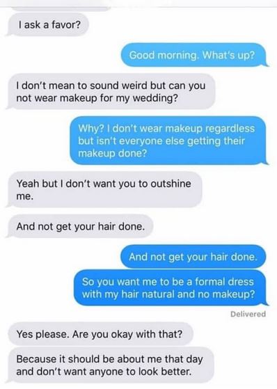 In what will come across as a rather strange development, a bride has asked her best friend to not look beautiful on her wedding day so as not to outshine her.