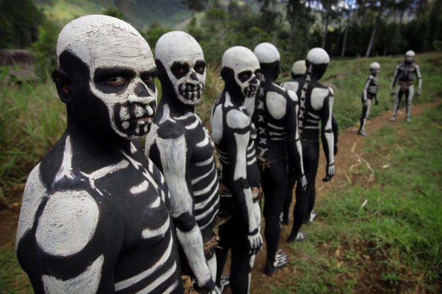 The story has been told of the Chimbu or Simbu tribe of Papua New Guinea and their 'skeleton dancers'.