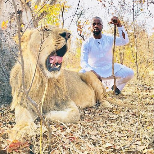 The media entrepreneur released a photo and a video of his adventure with a lion in Zimbabwe on his Instagram page on Wednesday.