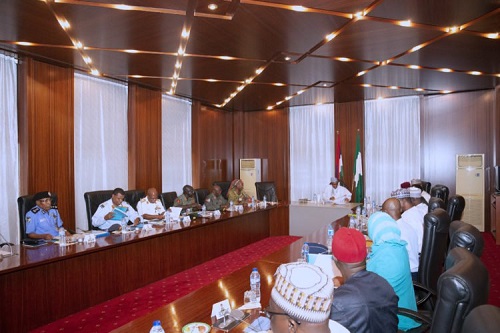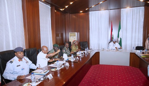 Also at the meeting were the Chief of Army Staff, Lt. Gen. Yusuf Buratai and the representative of the Inspector General of Police, Mohammed Adamu.