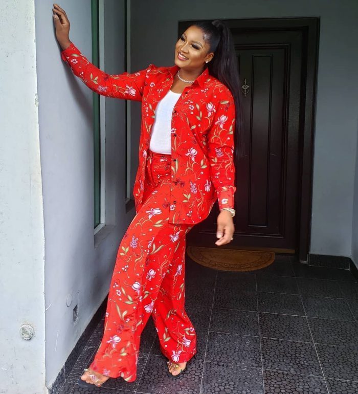 Award-winning actress, Omotola Jalade Ekeinde glows as she shared her new pictures in a matching two-piece floral outfit.