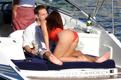 English actress Jennifer Metcalfe sent hearts racing as she cuddled up to her boyfriend, Greg Lake, slipping into a very sexy swimsuit as she enjoyed a day out on a boat.