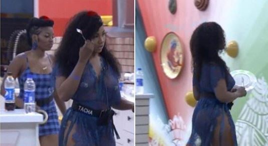 BBNaija housemate Symply Tacha as she was fondly called raised the eyebrow of housemates with her transparent oufit which exposed her boobs and bum.