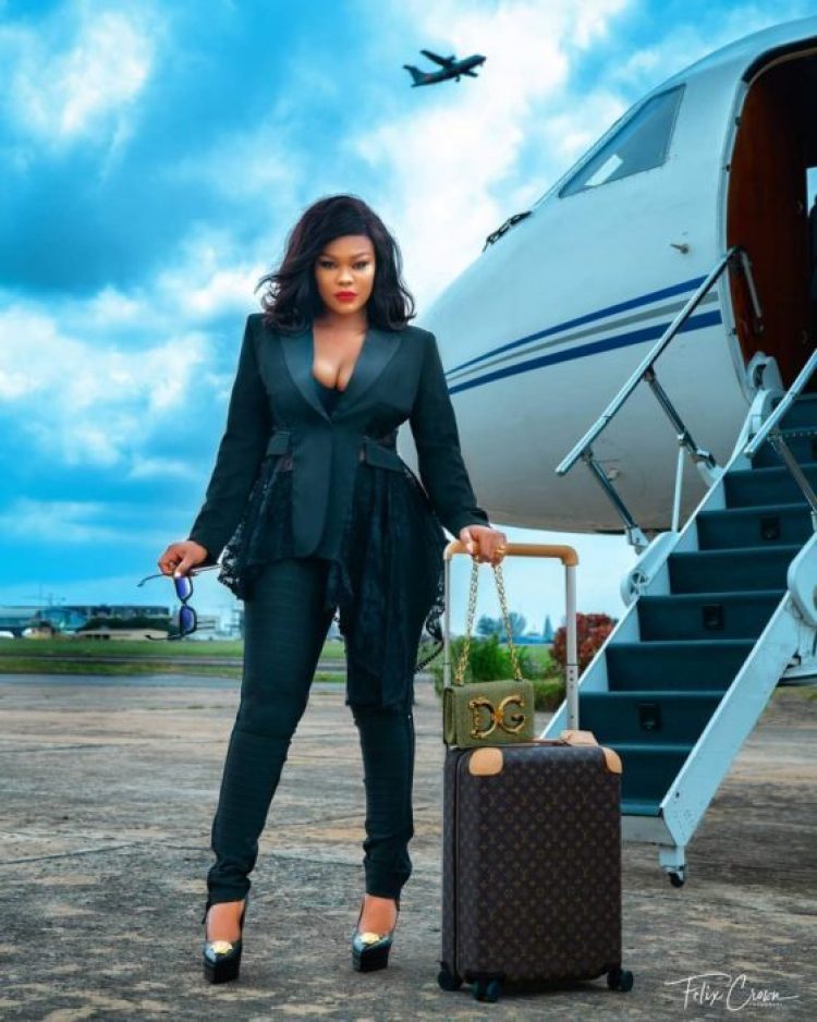 Aside flaunting her curvy resource, she has revealed two luxury houses in the highbrow areas of Lagos State, several exotic cars in her garage that remain unused. She flies business and first-class to foreign countries and her passion for ostentatious clothes, shoes, pieces of jewellery and others is arguably unmatched in the industry.