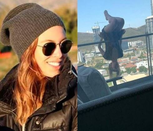 An image of Terrazas before she slipped went viral, showing the young woman hanging upside down in front of the balcony while supporting the entire weight of her body on the rail.