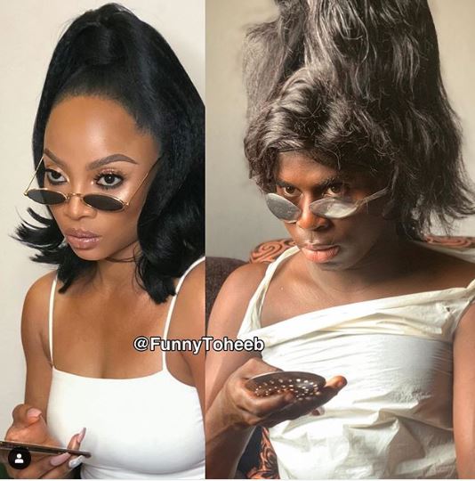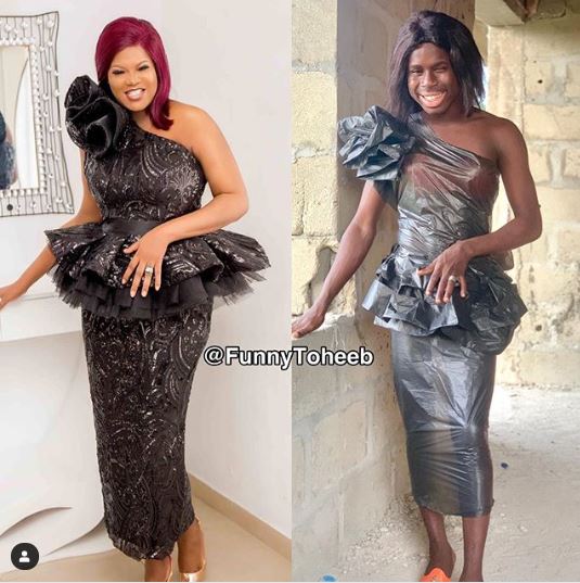 Funny Toheeb who is making a career out of recreating the pictures of celebrities on Instagram has come for Lagos socialite, actor, movie producer and mother, Toyin Abraham.