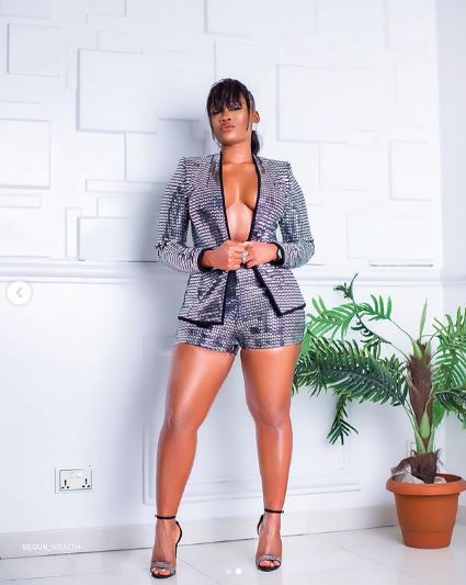 BBNaija Star, Cee-C Bares Cleavage In Glittering Jacket & Bum Shorts