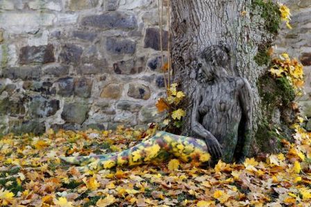 Artist Jörg Düsterwald created the illusion with photographer Tschiponnique Skupin and a model called Nadine in a forest in Lower Saxony, Germany.