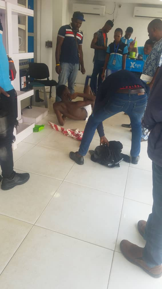 According to an eye witness, 'three of them entered Xright store at iyana ipaja, two of them stepped out while one remained inside and was acting as if he wants to buy a phone but ended up stealing it'.