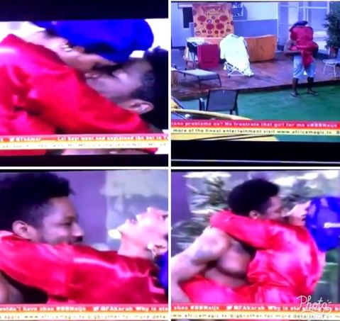 The BBNaija couple were kissing each other and it got really interesting when Mercy playfully pulled down Ike’s shorts which almost exposed his joystick if he hadn’t used his hands to cover it.