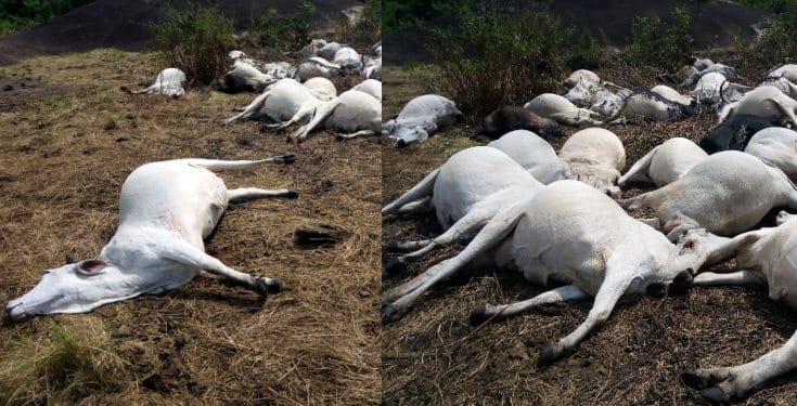 A group of herdsmen have taken to their heels after 36 cows they took to graze at the mountain top of Ijare community in Ifedore Local Government Area of Ondo State without permission from the community leaders, were allegedly struck dead by thunder on September 21.