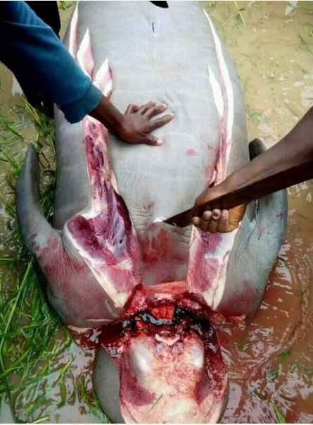According to the report shared by an online user, the aquatic animal pictured here was killed in Taraba State.