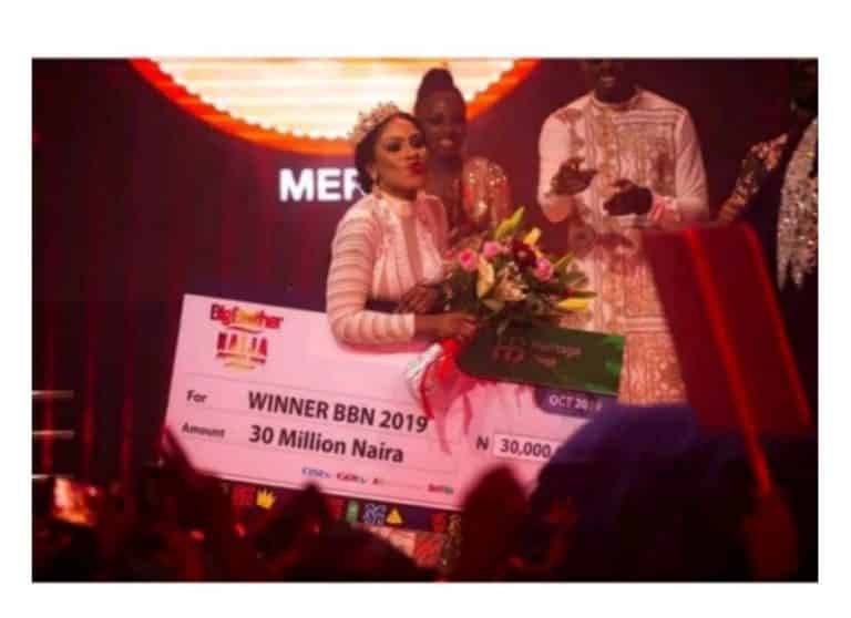 #BBNaija: Mercy All Smiles As She Receives Her Cash Prize Of N30million (Photos)