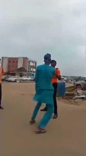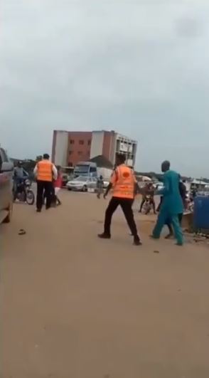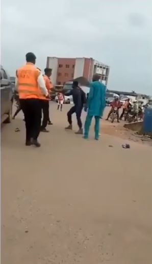 A traffic warden who is supposed to protected the law was seen engaging in an exchange of blows with some men in the Ashi junction area of Ibadan, Oyo State.