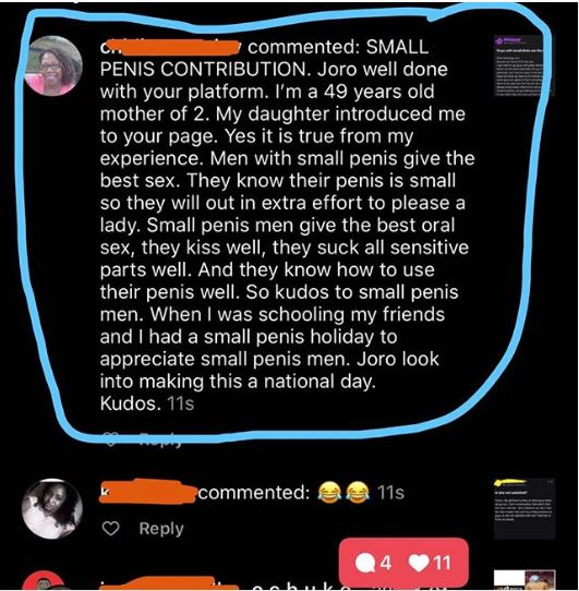 These men in recent times have opted for the enlargements of their third legs to avoid shame. A lady who recently slept with a man with a small manhood has stormed the Nigerian social media space to change the narrative.