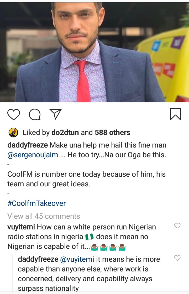 And a follower responded, writing: "How can a white person run Nigerian radio stations in Nigeria... does it mean no Nigerian is capable of it..."