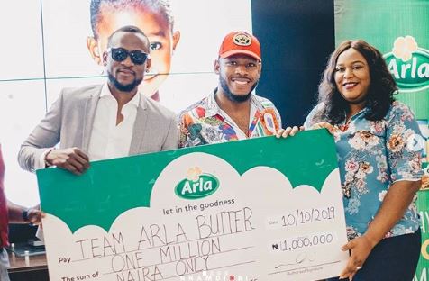 #BBNaija: Omashola And Frodd Get N1million From Arla Nigeria (Photo)